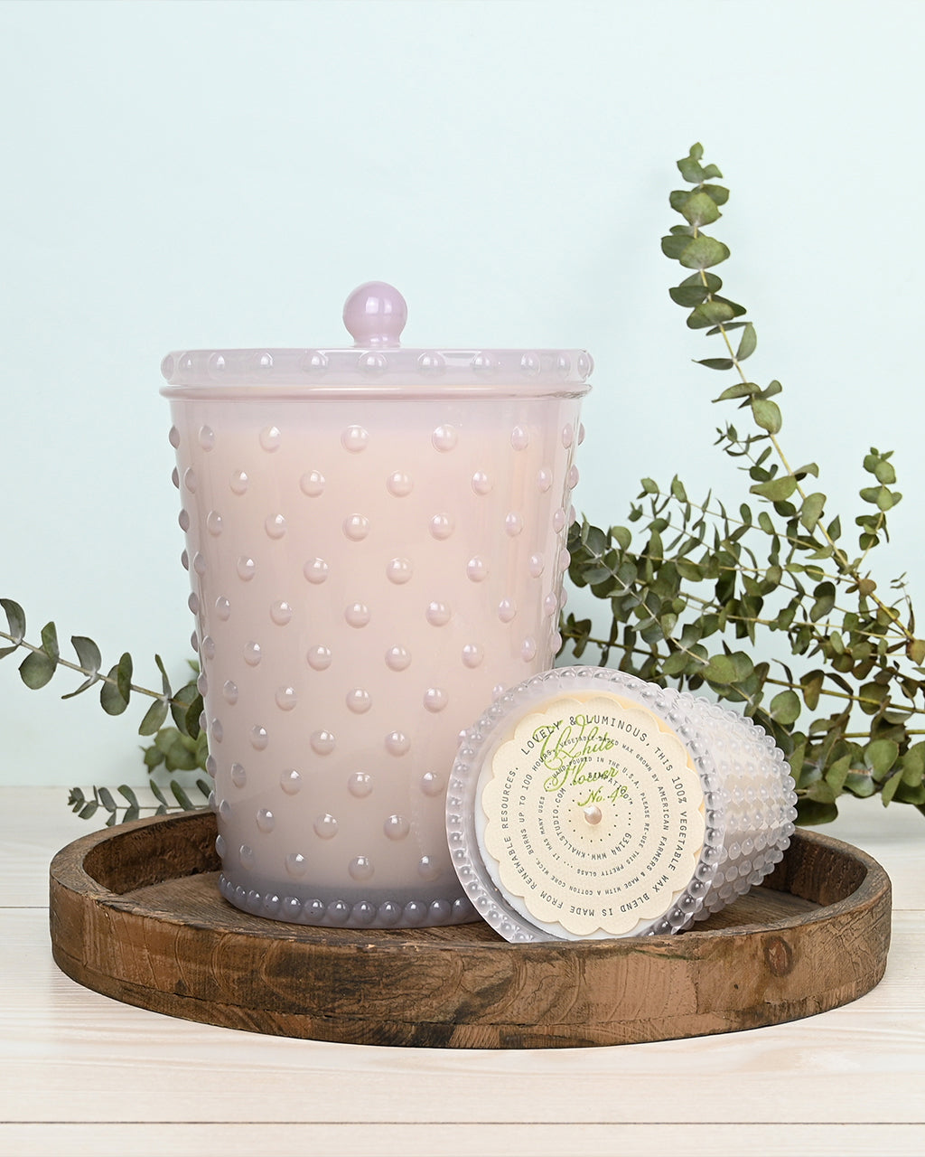 Grande White Flower Hobnail Glass Candle